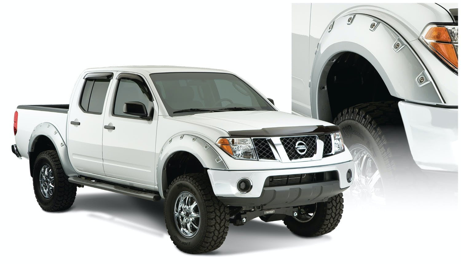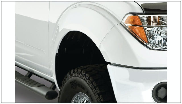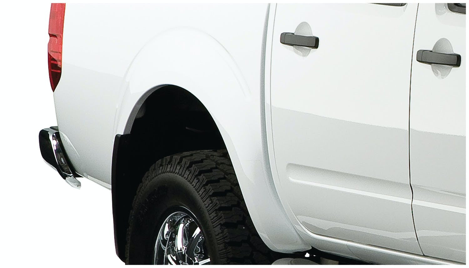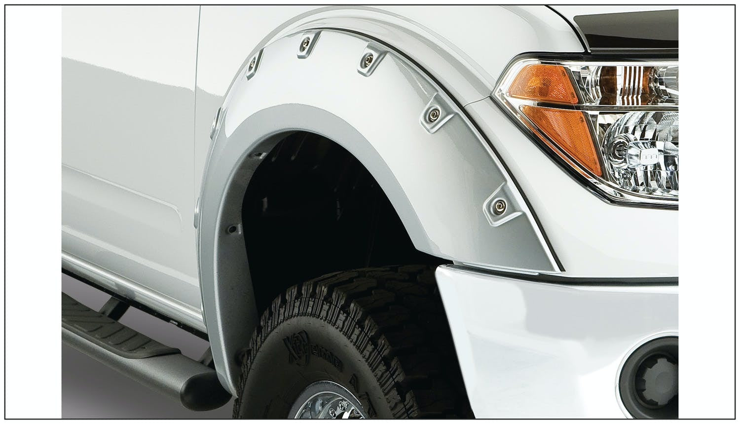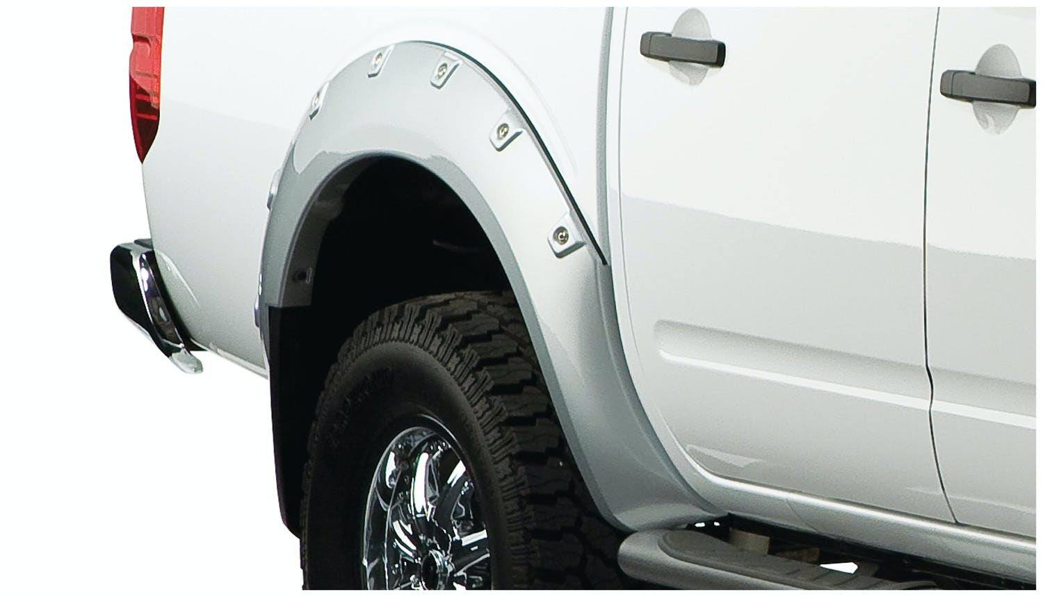With their surface-mounted stainless steel bolts and massive presence, Boss Pocket Style Fender Flares are a Bushwacker exclusive. Despite their aggressive bolt-on styling, Boss Pocket Style Fender Flares install in minutes, with no body-side drilling. They're custom-designed for your truck to complement oversized tires and high-clearance lift kits. These flares are now available pre-finished to match the paint on your new truck or SUV, plus they have the edge trim and stainless steel hardware pre-installed for quick and easy installation and a perfect fit-no drilling required. Boss Pocket Style Fender Flares are made from our thick, warp-resistant Dura-Flex 2000 material, tailor-made for added durability and flexibility on the trail. When you need maximum tire coverage with minimum time and effort, it's in the pocket. Boss Pocket Style Fender Flares from Bushwacker.
