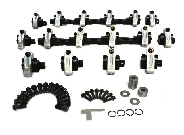 With a 2024 aluminum rocker and 8620 hardened steel shaft, this shaft-mount rocker system adds stability to the engine which frees up horsepower. This system features 1.7 ratio rockers for BBC w/ 18 degree Brodix Big Duke/Dart Big Chief.