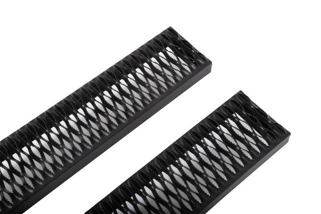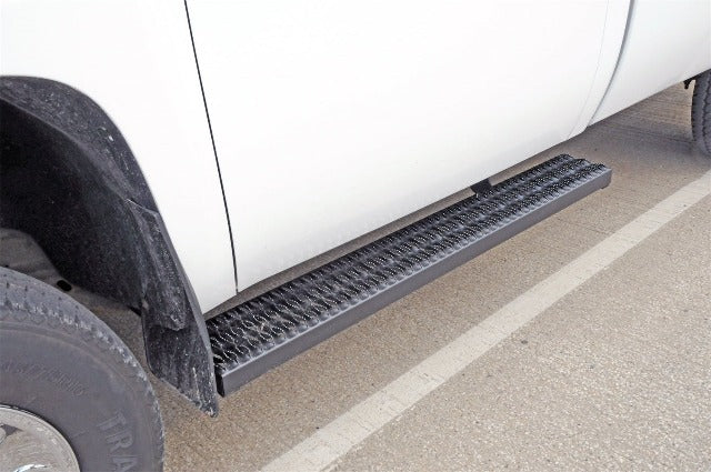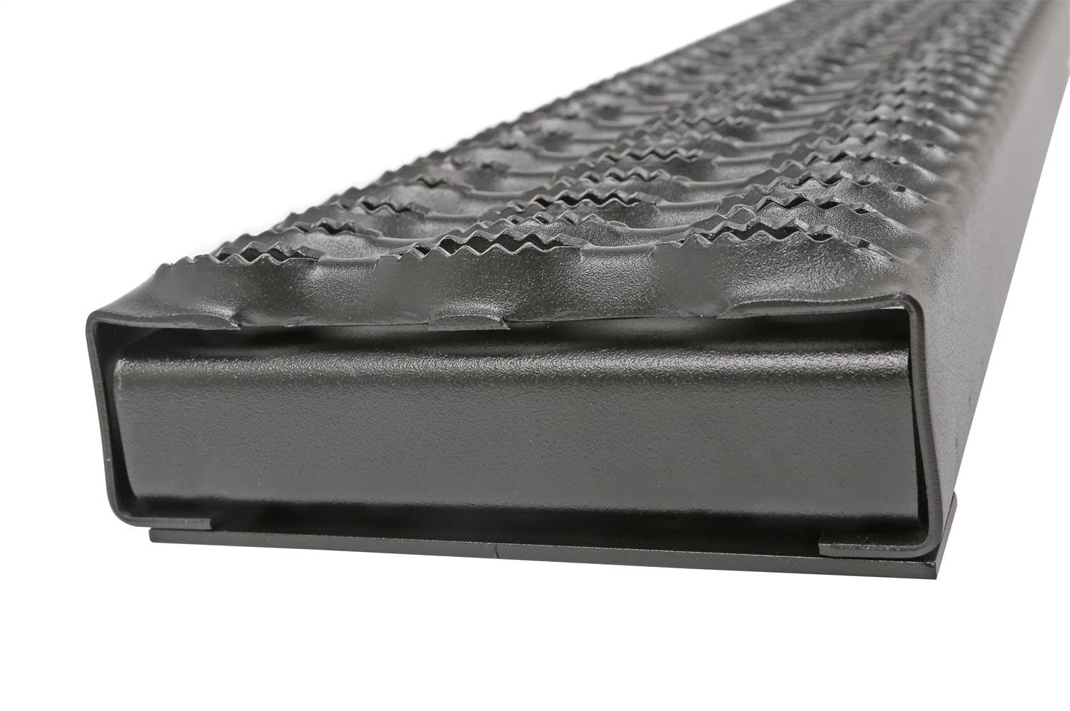 Dee Zee Rough Step - Industrial gauge steel coated in Dee Zees black NRT(TM) (No Rust Technology) powder coat to increase corrosion resistance. Industrial grating step provides extra traction getting in and out of the vehicle while allowing mud, water, snow, and ice to drain off the stepping area. Full length. Custom Fit - some drilling may be required. Brackets sold separately.