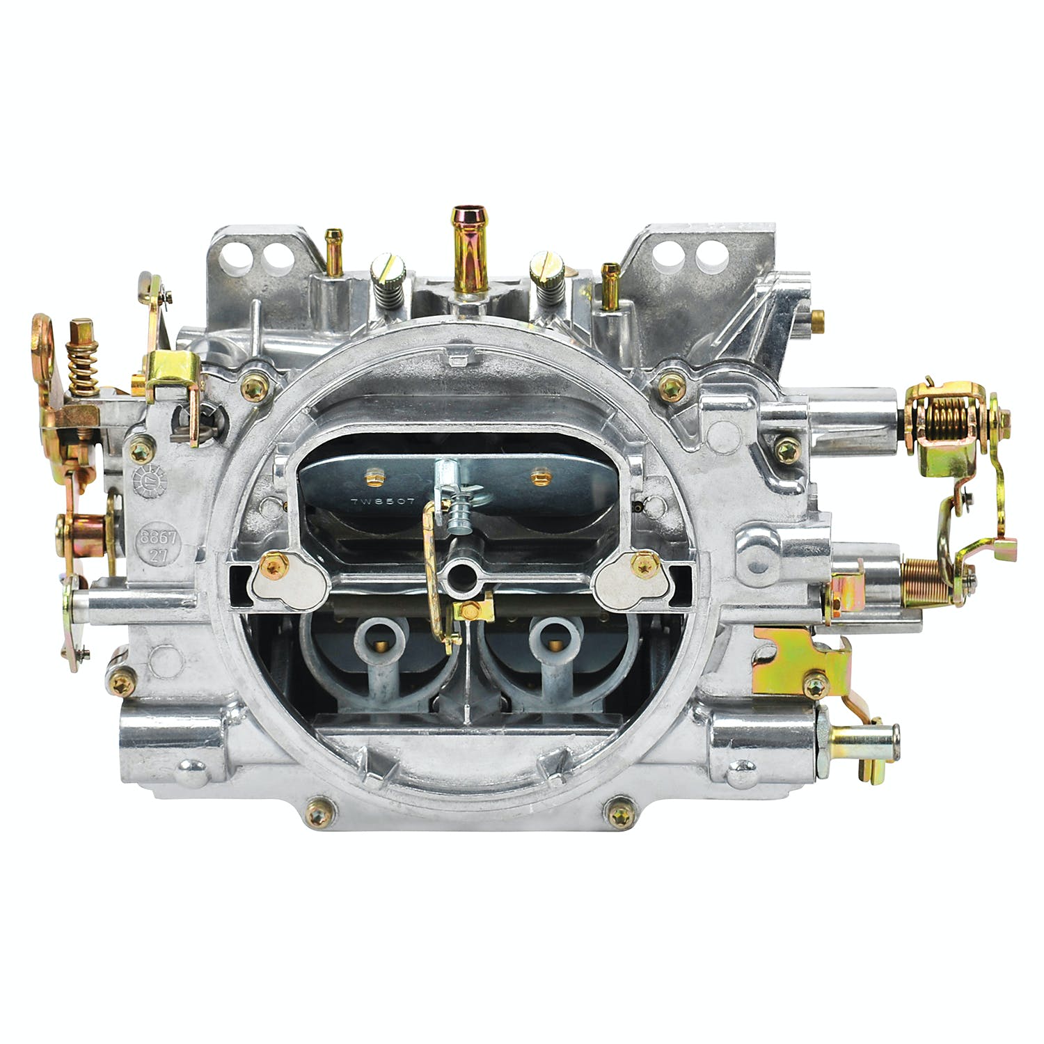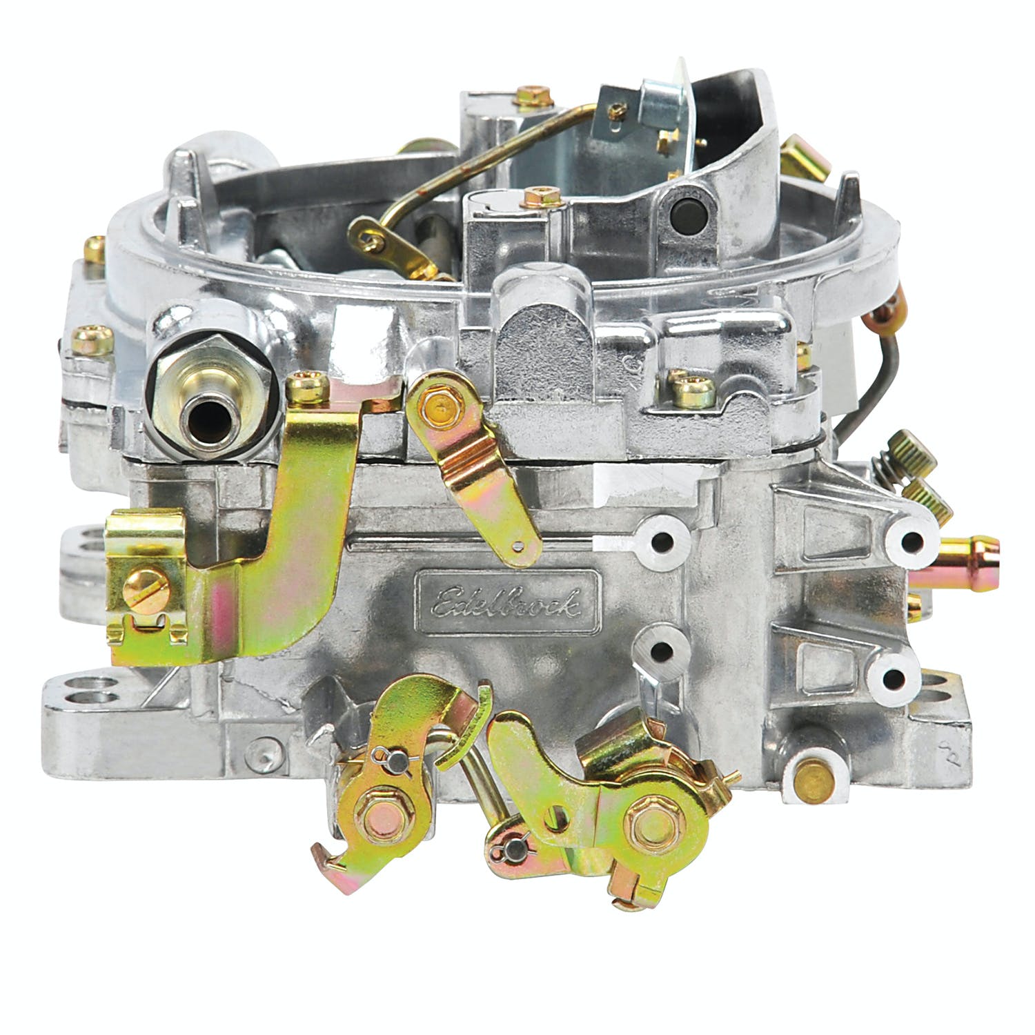 The Edelbrock 1412 Performer Series 800 CFM manual choke carburetor is a precisely tuned, quality-built carburetor that can handle the rigors of daily driving while delivering consistent, reliable street performance from day to day. Several characteristics make the 1412 Performer Series 800 CFM manual choke carburetor an outstanding street performer. The first one is that metering rods are utilized to transition between circuits. The carburetor is unaffected by engine backfires, which means that there are no power valves to blow out, and the rods can be changed in seconds without carburetor removal or fuel draining. Secondly, the carburetor has the unique ability to "hold a tune", so once it is tuned, the carburetor stay's tuned. What this means to you is that compared to other carburetors, the performance remains consistent and the calibration stays unchanged. The lightweight all-aluminum body features a two-piece body that resists warping and is compatible with gasohol and blended fuels. The simple tub-type bowls and rear-pivot floats all contribute to a carburetor that's reliable, user-friendly and is easily tunable for miles and miles of trouble-free operation. Dyno tests proved that the EPS 800 carb outperformed a Holley #3310 carb out-of-the-box by 26 ft-lbs. of torque and 22 hp on a small-block Chevy engine equipped with an Edelbrock Performer RPM power package