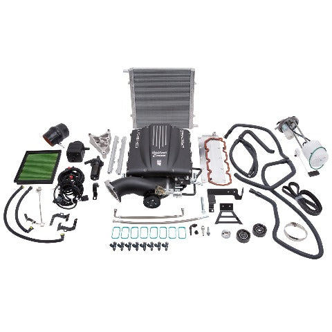 The Edelbrock supercharger Stage 1 Street System part #15600 for 2007-10 Silverado and Sierra HD 2500 increases the performance of your 6.0L Gen IV engine to 424 horsepower and 431 ft-lbs of torque at the rear wheels when used with Edelbrock tune (kit supplied without a programmer). The core of this system is the Eaton Gen VI 2300 TVS rotating assembly with a four-lobe design with 160 degrees of twist for maximum flow, minimum temperature rise and quiet operation for excellent drivability. We also designed our superchargers with an integrated bypass valve to help eliminate parasitic loss under light throttle, improving mileage potential. Our unique and efficient inlet configuration results in a shorter, less restrictive intake path for improved airflow, without the need for a jack-shaft. Keeping the air cool is a high-capacity air-to-water intercooler and low-temp heat exchanger. HANDHELD PROGRAMMER NOT INCLUDED. Supercharger systems sold without tuners are only emissions legal when used with the correct Edelbrock program.