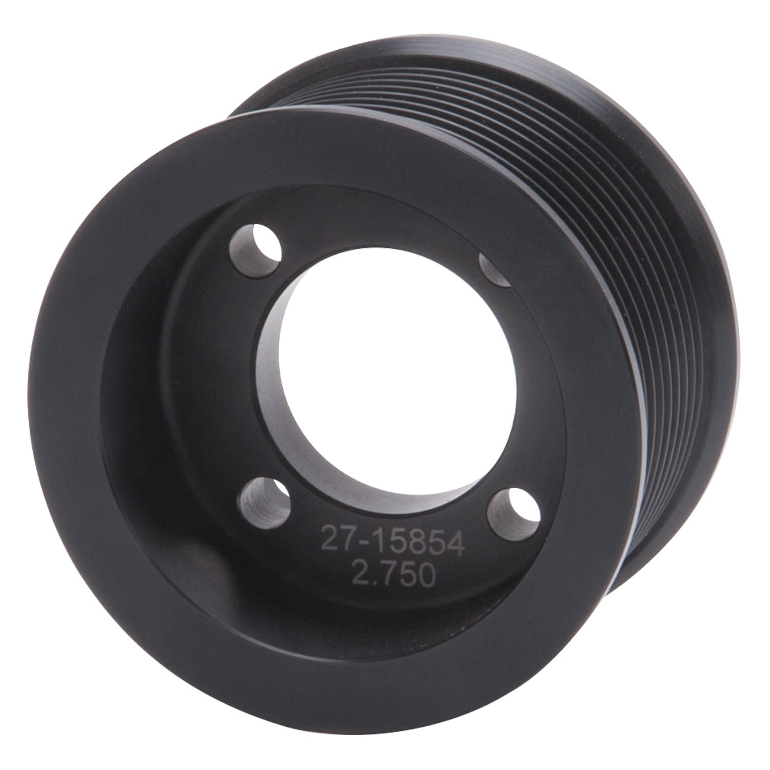 Edelbrock 2.750in. pulley part #15854 allows you to fine tune the airflow and performance of your Edelbrock C7 Corvette or Enforcer Supercharger system to your preference. The Edelbrock #15854 features a 10-rib design for use with our Edelbrock street rod and muscle car Supercharger systems. Edelbrock pulley part #15854 offers a Black Anodized finish. - 2.75in. 10-Rib Edelbrock's/C Pulley in Black Finish for Enforcer Systems