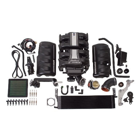 The Edelbrock supercharger Stage 1 Street system part #15890 for 2010 Mustangs increases the performance of your 4.6L 3V engine to 466 horsepower and 439 ft-lbs of torque at the crank when used with Edelbrock tune (kit supplied without a programmer). The core of this system is the Eaton Gen VI 2300 TVS rotating assembly with a four-lobe design with 160 degrees of twist for maximum flow, minimum temperature rise and quiet operation for excellent drivability. We also designed our superchargers with an integrated bypass valve to help eliminate parasitic loss under light throttle, improving mileage potential. Our unique and efficient inlet configuration results in a shorter, less restrictive intake path for improved airflow, without the need for a jack-shaft. Keeping the air cool is a high-capacity air-to-water intercooler and low-temp heat exchanger. HANDHELD PROGRAMMER NOT INCLUDED. Supercharger systems sold without tuners are only emissions legal when used with the correct Edelbrock program.
