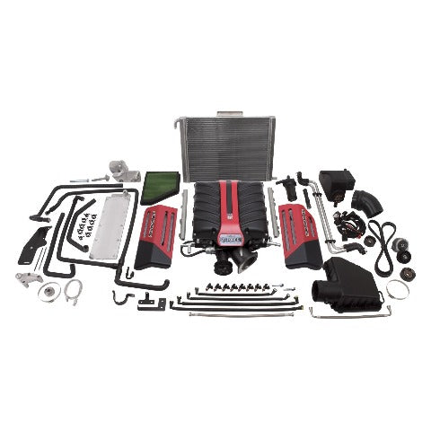 The Edelbrock supercharger Stage 1 Street system part #15970 for 2010-13 Camaro SS increases the performance of your L99 engine to 421 horsepower and 439 ft-lbs of torque to the rear wheels when used with Edelbrock tune (kit supplied without a programmer). The core of this system is the Eaton Gen VI 2300 TVS rotating assembly with a four-lobe design with 160 degrees of twist for maximum flow, minimum temperature rise and quiet operation for excellent drivability. We also designed our superchargers with an integrated bypass valve to help eliminate parasitic loss under light throttle, improving mileage potential. Our unique and efficient inlet configuration results in a shorter, less restrictive intake path for improved airflow, without the need for a jack-shaft. Keeping the air cool is a high-capacity air-to-water intercooler and low-temp heat exchanger. HANDHELD PROGRAMMER NOT INCLUDED. Supercharger systems sold without tuners are only emissions legal when used with the correct Edelbrock program. 2010-15 convertible installations will require the use of Edelbrock Convertible Brace #15956 (sold separately).