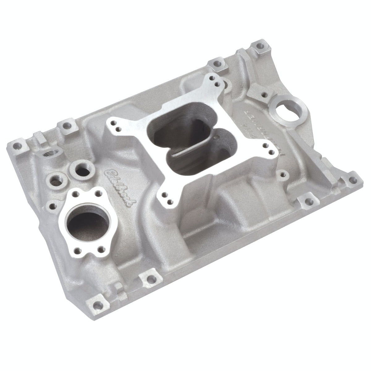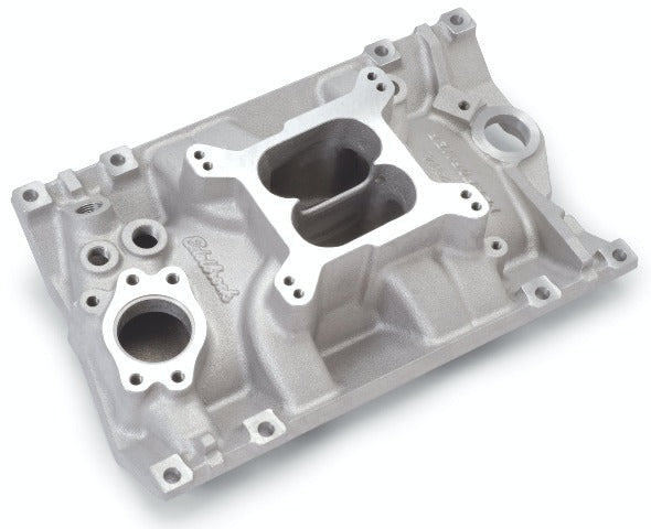 Edelbrock part #2114 Performer Vortec V6 intake manifold is based on the powerful Edelbrock #2111, this dual-plane intake is designed for the engine swap market utilizing 1985 and later Chevy 200-229-262 c.i.d. (3.8L and 4.3L) V6 engines with Vortec heads. With this manifold, rodders can take advantage of the higher flow available with the Vortec head design. This Performer Vortec intake manifold has provisions for external water bypass and may be used on either Vortec blocks or 1995 and earlier blocks. Designed for use with Edelbrock Thunder Series AVS or Performer Series 500 cfm carbs, it accepts late model water neck, alternator, HEI and air conditioning.
