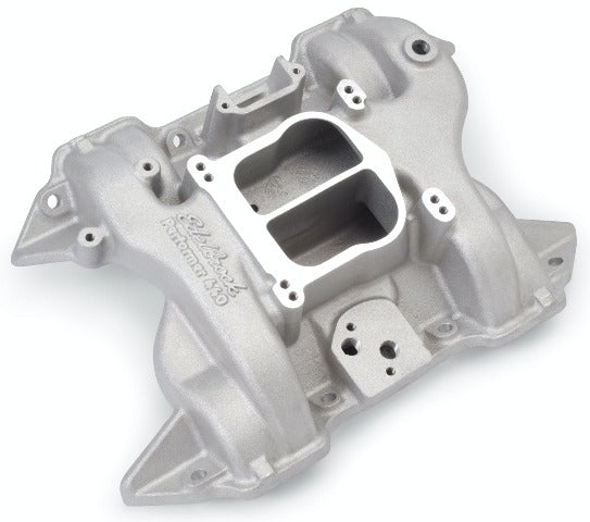 Edelbrock Performer 440 Intake Manifold for Chrysler "RB" 413-426-440 V8's. Accepts OEM 4-bbl or 4150-Style Square-Bore Carburetors; Non-EGR. Works with EGR for 1972-79 440 V8s with OEM 4-bbl. carb. Will not fit 1962-64 Max Wedge Heads