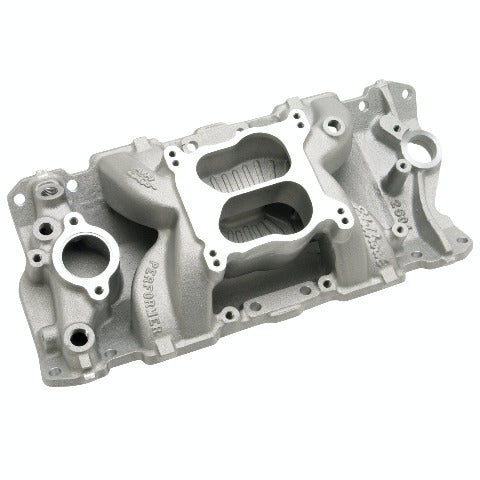 Edelbrock Performer Air-Gap Intake Manifold for 1987-95 262-400 Small-Block Chevrolet V8's with OEM Cylinder Heads. Work with either a Q-Jet or a 4150-Style Square-Bore Carburetor. Non-EGR.