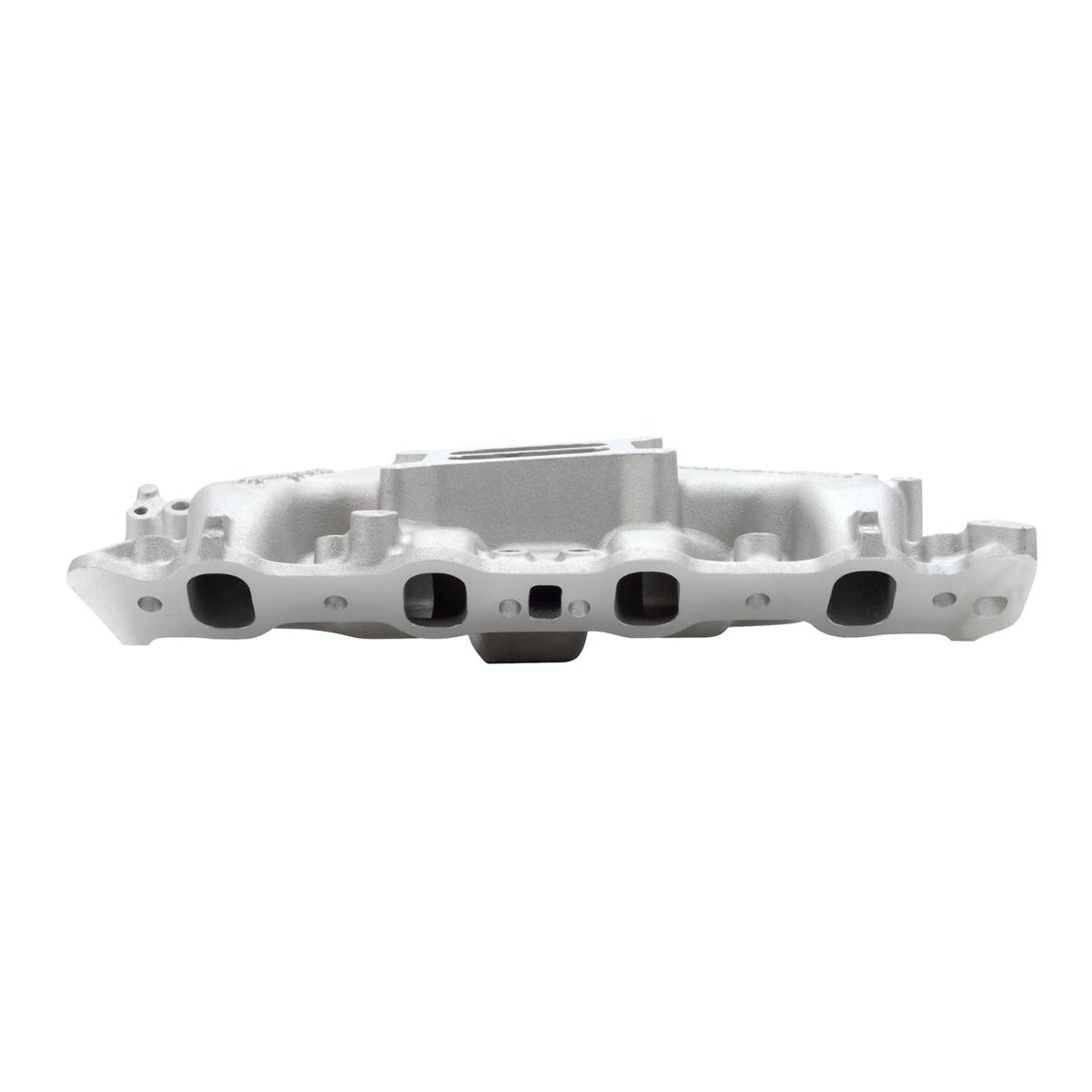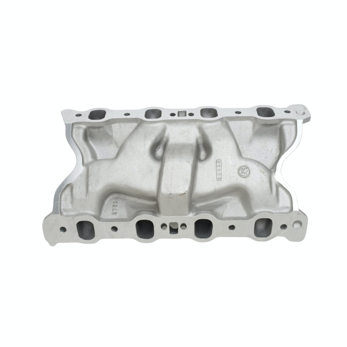 Edelbrock part #2750 Performer 351-2V intake manifold is designed for street 351C and accepts 4V carb, however it's designed to improve the performance of engines that came stock with 2V carb and heads. Manifold will fit Boss 302 or accept stock Motorcraft spread-bore carb. End-seal flange width measures 6-31/32". Edelbrock's Patented Dual-plane, low-rise design with a 180-degree firing order greatly improves torque over a wide rpm range for excellent throttle response from off-idle through 5500rpm. This Performer intake manifold is ideal for passenger cars, trucks, 4x4s, tow vehicles and RVs.