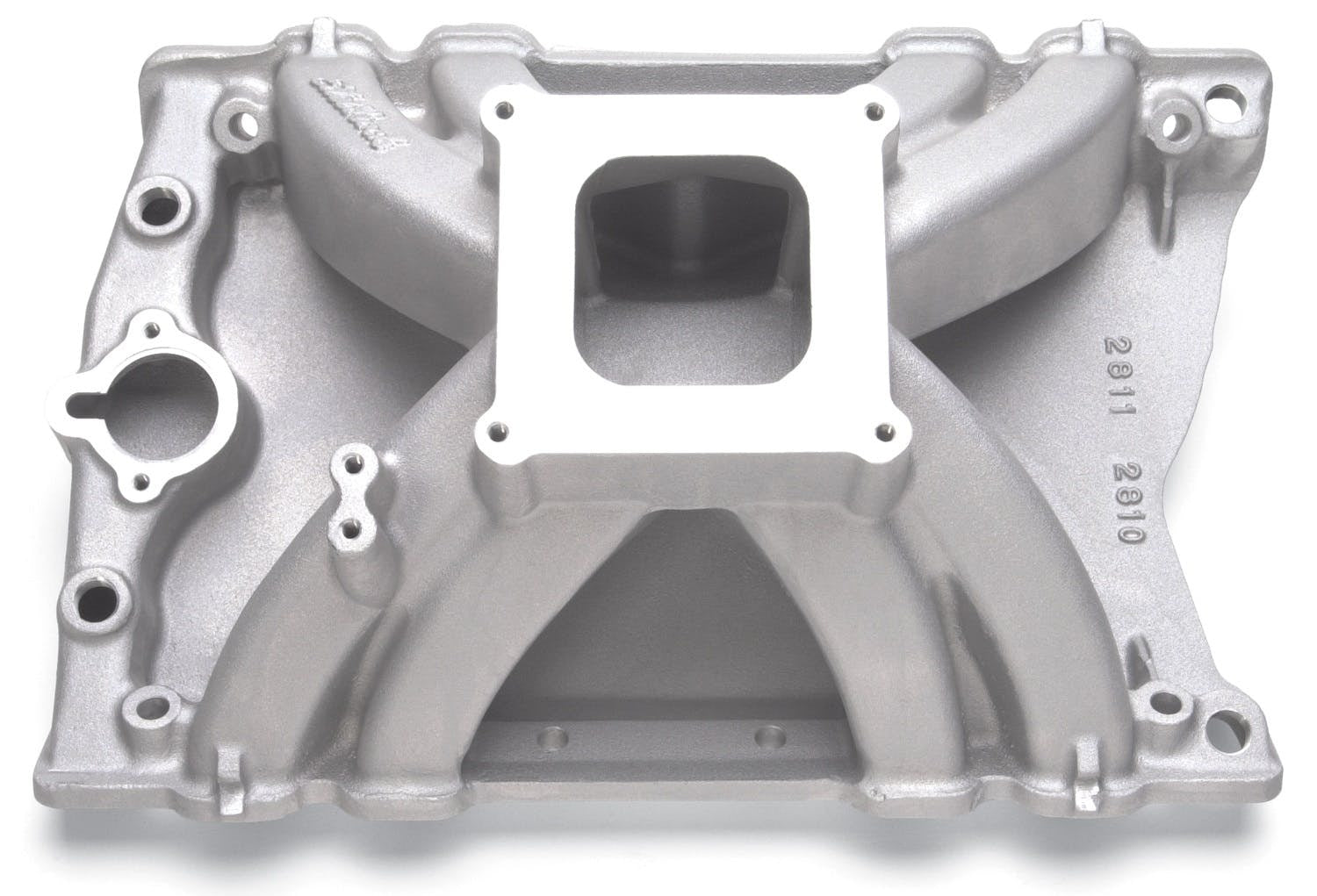 Edelbrock Victor Olds 455 Intake Manifold for 400-425-455 Big-Block Oldsmobile Engines is Designed for High-Performance Competition & Marine Engines. Accepts a 4150-Style Square-Bore Carburetor. Non-EGR.
