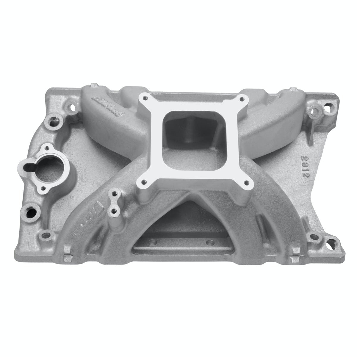 Edelbrock Victor Olds 350-403 Intake Manifold for 350-403 c.i.d Oldsmobile Small-Block Engines is Designed for High-Performance Competition & Marine Engines. Accepts a 4150-Style Square-Bore Carburetor. Non-EGR.