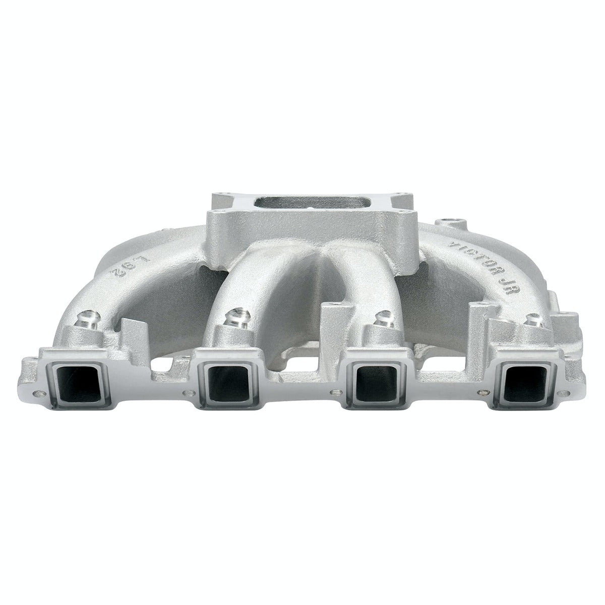 Edelbrock part #28456 Victor JR. LS3 intake manifold is designed for Gen IV LS engines equipped with LS3, L92 and L76 cylinder heads. This manifold is for EFI racing applications operating between 3500-7500 rpm. The Edelbrock Victor JR. LS3 intake manifold comes with an MSD #6014 Timing Control Module. This manifold uses a standard square bore throttle body flange that is compatible with both Edelbrock EFI intake elbows with single bore 90mm throttle body or four-barrel #4150 throttle bodies. This intake has additional bosses and machining that allow for the use of fuel injectors when combined with the #3638 fuel rail kit (sold separately). The LS3, L92 and L76 all use the same cylinder head.