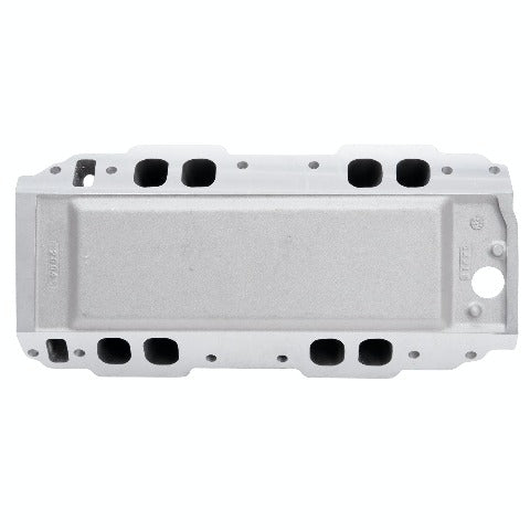 Edelbrock part #2904 Victor Jr. 454-O intake manifold is designed for competition 396-502 big-block Chevys with large oval-port heads (1975 & earlier). Features include extended runner dividers, smaller plenum chambers and unique runner design for better 60 foot times and max power from 3500 to 7500 rpm. This manifold is especially suited to 502 c.i.d. and smaller competition engines. This intake manifold is a single plane 4150 flange competition manifold designed to fit standard deck blocks from 1965 to present. It is designed to be matched with our Edelbrock/Musi Victor 24-degree Pro-Port CNC heads #61419 or #61409 for 950+ hp out-of-the-box potential!