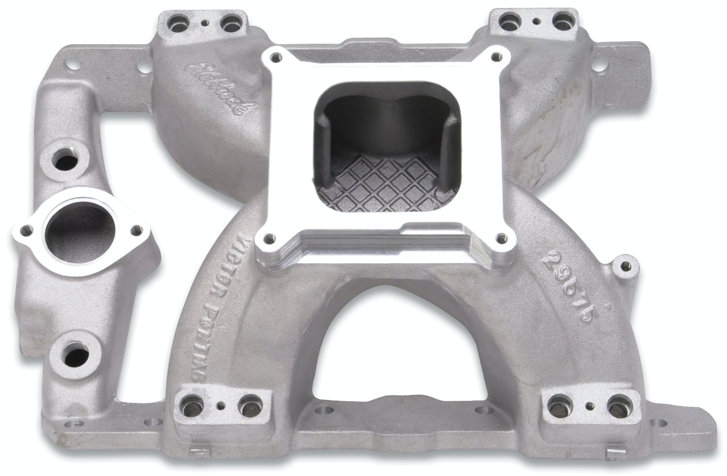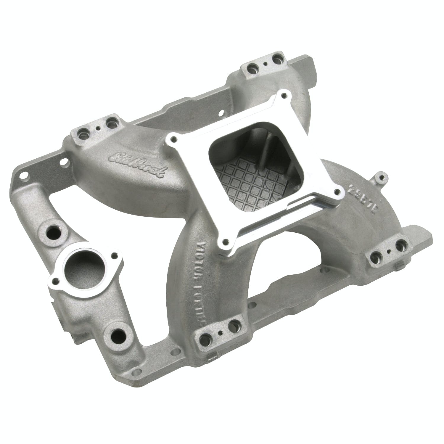 Edelbrock part #29575 Victor Pontiac EFI intake manifold is designed for use with 389-455 EFI competition engines. It is ideal for drag racing (Super Stock, Super Gas, Super Comp, Brackets, etc.), marine or any application requiring maximum power up to 7500 rpm. Compatible with standard Pontiac cast iron heads, or use with Edelbrock Performer RPM Pontiac aluminum heads for maximum power. Port exit size at head is 1.08" x 2.10" with enough material to open it up to larger port openings. This intake manifold is machined for use with 4150 series carburetors and throttle bodies.