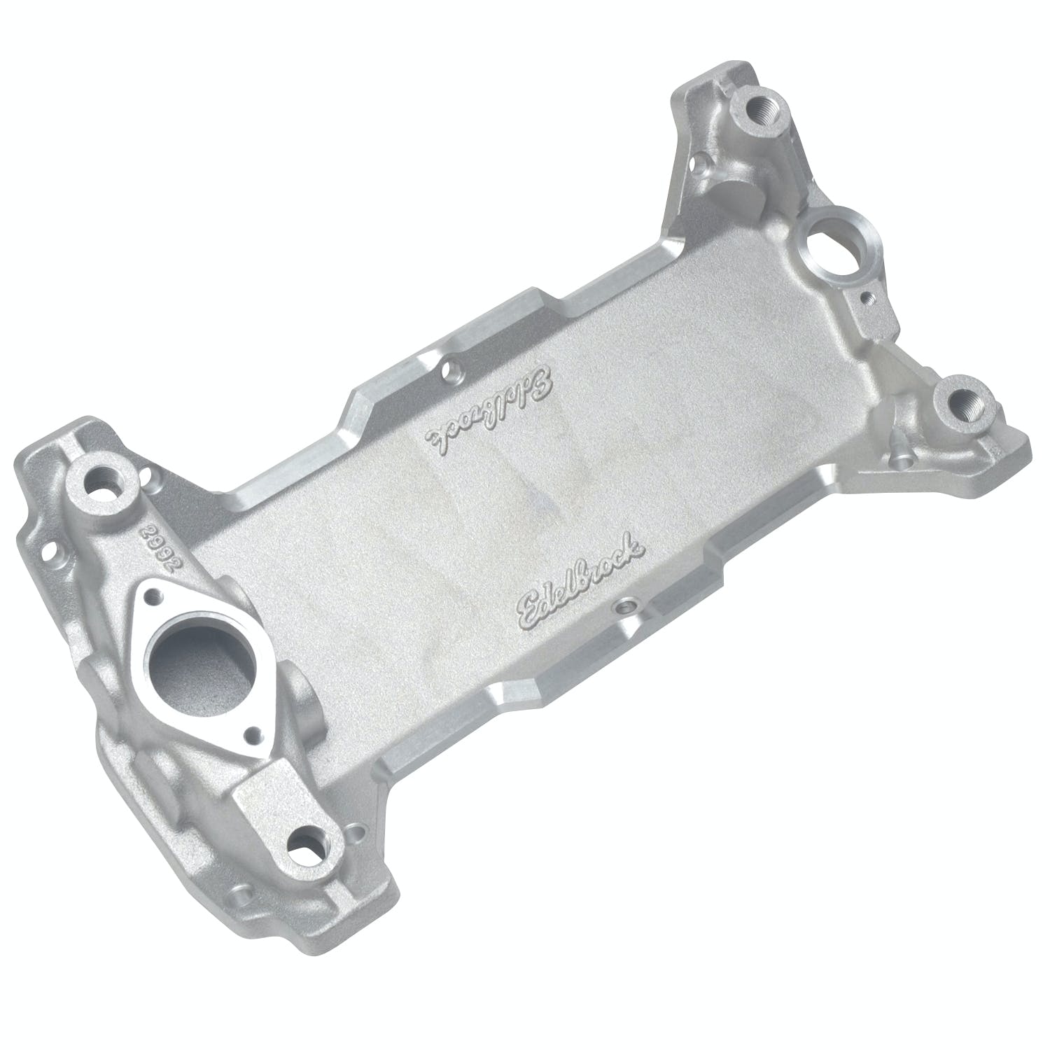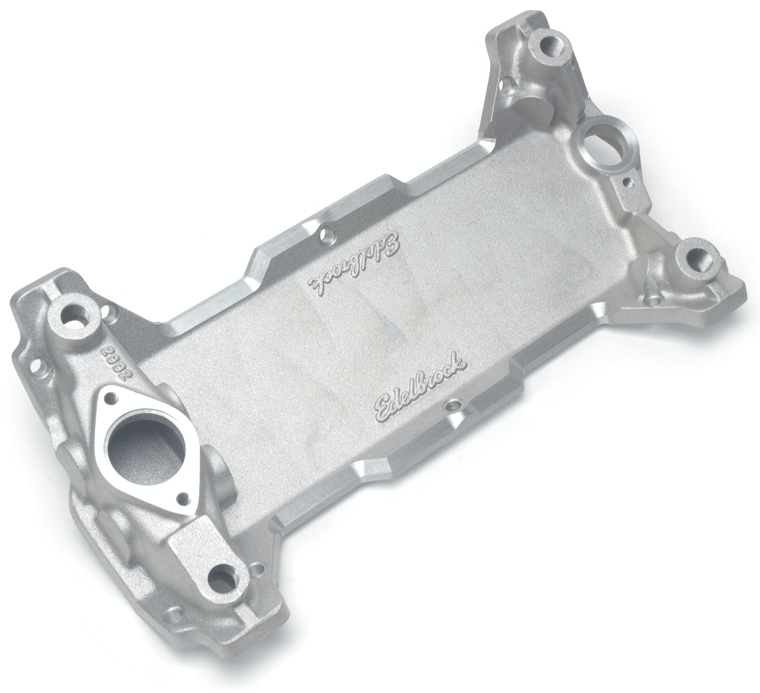 Edelbrock part #2992 Victor 18 Degree Spider base is the bedding plate portion of a two-piece (valley plate and spider) manifold system. This Spider base is intended for use with "Conventional" 18-degree SBC heads on a standard deck engine block. This plate is more compatible when using our older 18-degree intakes such as 2955 and 2958 and will require less work for proper fit.