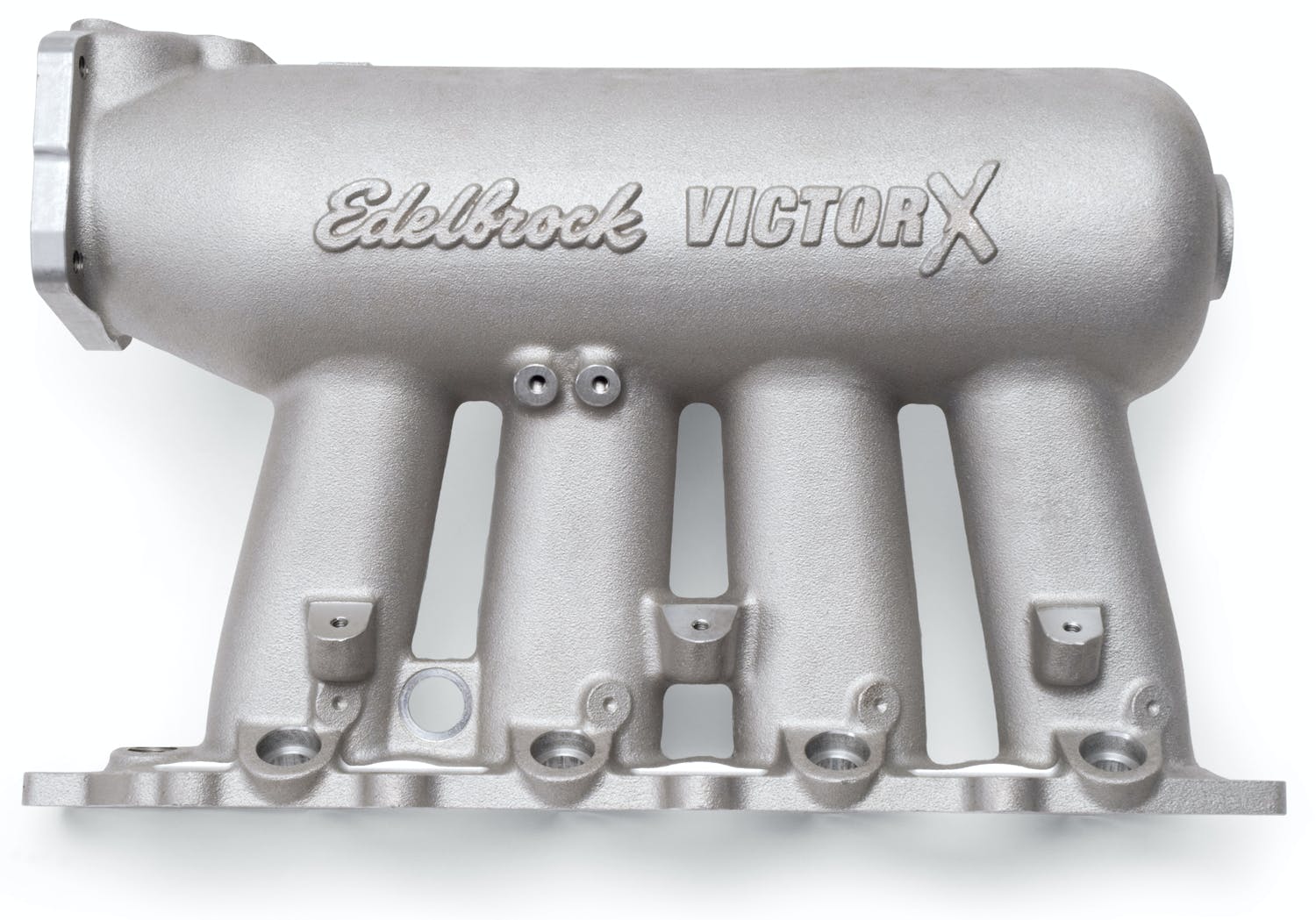 Edelbrock part #4764 Victor X intake manifold is designed for B16A & Type R B18C5 engines. This intake manifold is optimized for maximum power from 7,000 to 10,000 RPM, the Victor X manifold is designed for turbo and all-motor applications. Engineered for high performance, this manifold has four additional bosses for nitrous or added fuel injectors.