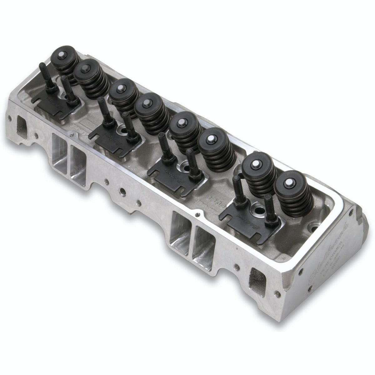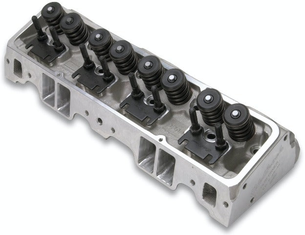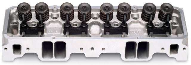 The Edelbrock #60759 Performer cylinder head is designed for 302, 327, 350 and 400 cid small-block Chevy engines up to 1986. This cylinder head includes your choice of 64cc (In order to retain stock compression ratio on 1970 and earlier small-blocks) or 70cc combustion chambers and high flow intake and exhaust ports. A Complete head includes larger-than-stock 1.46" valve springs to handle most high-lift cams. This head retains the stock intake port location for compatibility with standard manifolds and headers. Heat crossover is machined for 50-state emissions legal performance.