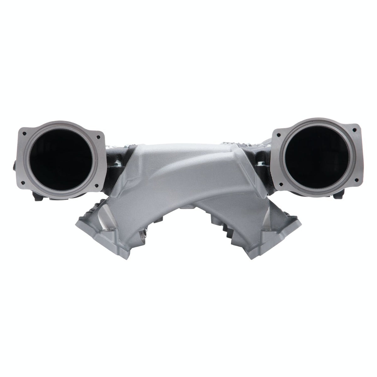 Edelbrock part #71413 LS3 Cross-Ram intake manifold is designed for Gen IV engines with LS3, L92 and L76 rectangular port cylinder heads. The Cross-Ram LS3 is ideal for anybody looking to combine great looks and outstanding performance between 1,500 - 7,000 rpm. The unique dual-plenum design features 13" long runners with flanges that will accept two, 90mm GM LS3 throttle bodies. The unique cross-ram dual-plenum design is ideal for twin turbo applications. When matched with high flowing air filters and inlet tubes, the dual-plenum system gives neck-snapping performance with plenty of options for engine builders and tuners.