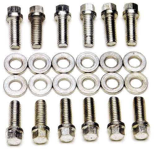 Edelbrock part #8504 Intake Bolt kit is designed specifically for 1986 & earlier small-block Chevy Edelbrock manifolds. This bolt kit features reduced hex heads for easy wrench access. Features include cadmium finished steel bolt and hardened washers.