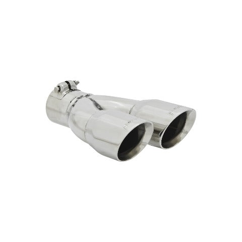These fully polished stainless steel tips feature a double-wall construction, a rolled or cut edge style and come finished with embossed Flowmaster logo. Clamp-on installation. Available in various sizes. Sold individually.