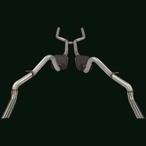 American Thunder Header Back Exhaust System; Dual; Dual Rear Exit; Incl. 2.5 in. Tubing From Trans X-Member Back/H-Pipe/Super 44™ Delta Flow Mufflers/Stainless Steel Tips;