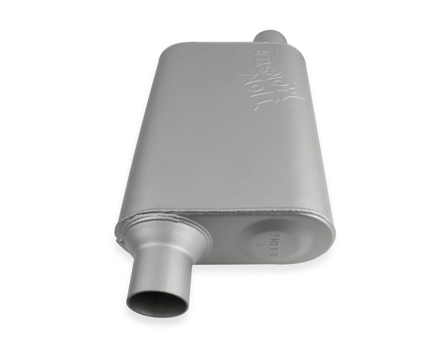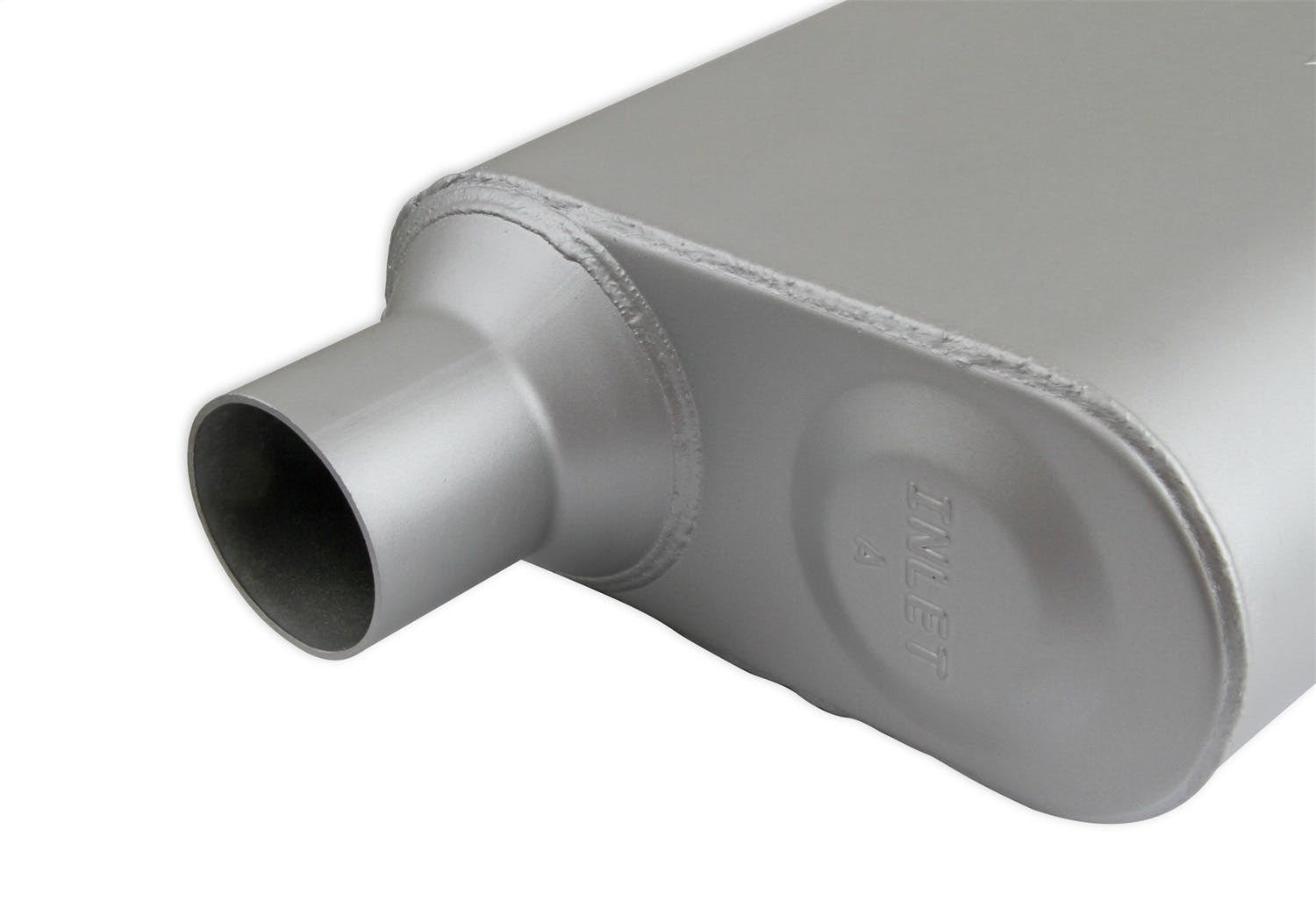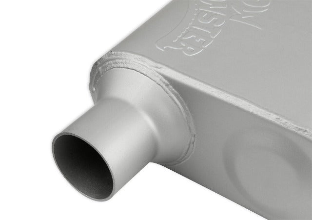 FlowMonster Muffler; 2 Chamber; 2.25 in. Offset Inlet/2.25 in. Offset Outlet; Case Dimensions 4 in. x 9.75 in. x 13 in.; 19 in. Overall Length; Aluminized Steel;