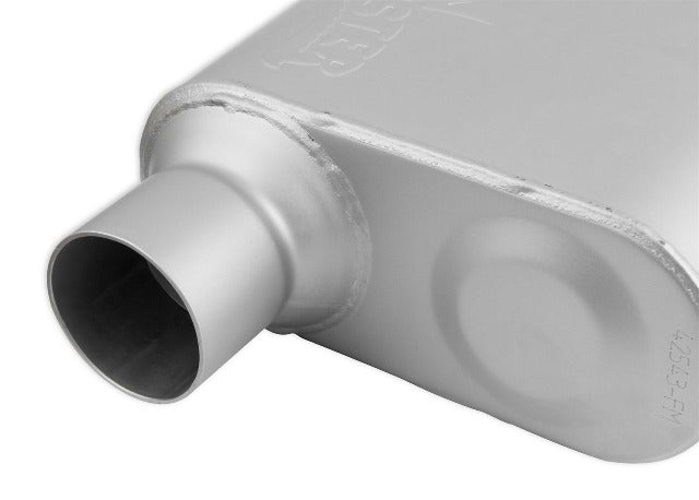 FlowMonster Muffler; 2 Chamber; 2.50 in. Offset Inlet/2.50 in. Offset Outlet; Case Dimensions 4 in. x 9.75 in. x 13 in.; 19 in. Overall Length; Aluminized Steel;