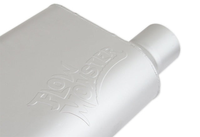 Unleash your Monster with FlowMonster chambered mufflers. Hidden beneath your ride lies a powerful creature destined to dominate. FlowMonster chambered mufflers create an aggressive exhaust note giving a powerful voice to your car/truck/SUV. FlowMonster mufflers are constructed of 16-gauge aluminized steel and are 100% MIG welded for maximum strength and durability. The chambered design cancels out unwanted frequencies with no packing producing an aggressive exhaust note that will not change with time. FlowMonster mufflers are coated with high heat resistant silver paint for an aggressive look under your car. Here the Roar with FlowMonster!
