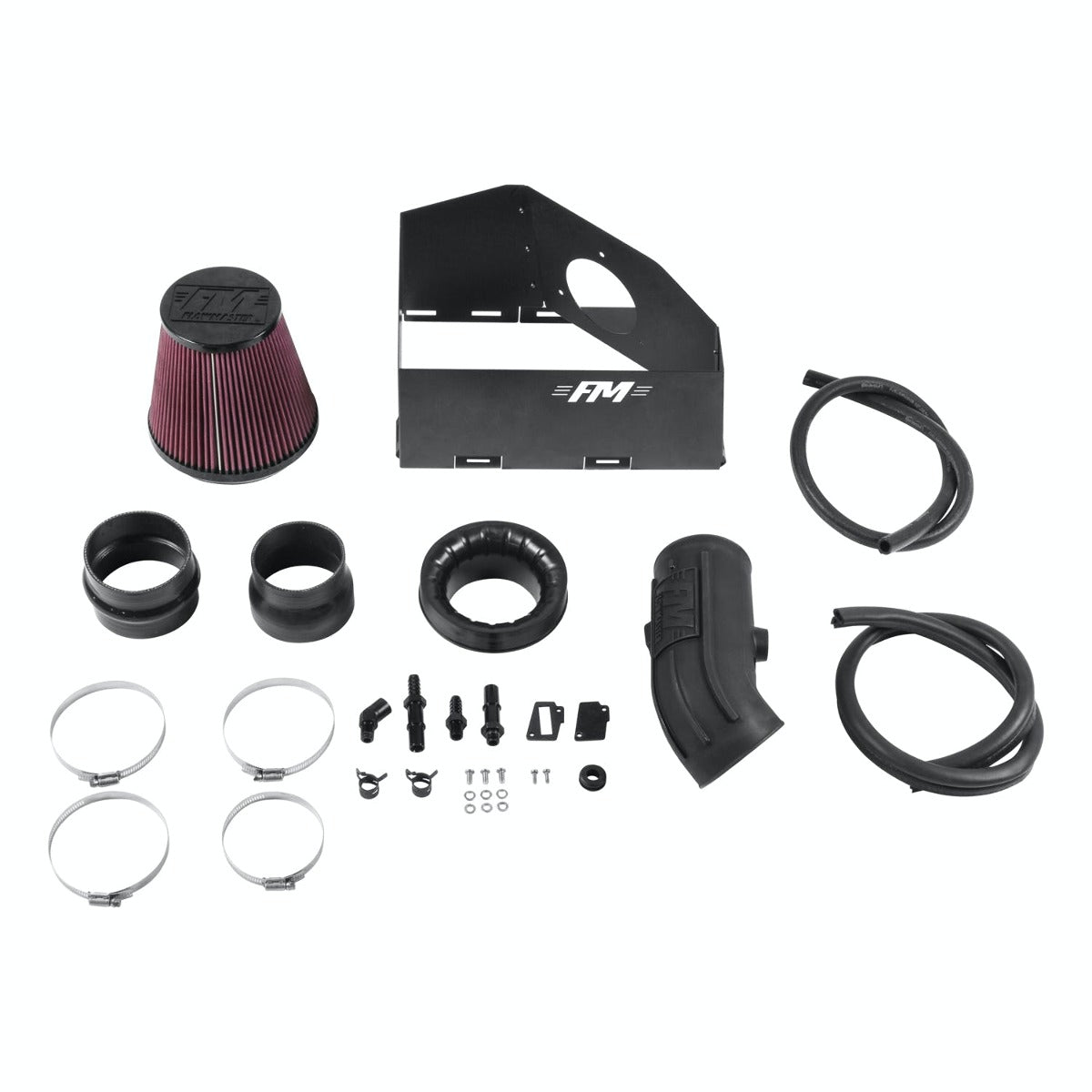 Delta Force Cold Air Intake Kit; Incl. Polyethylene Tubing/Air Dam/Red Cone Filter/Silicone Couplers/Stainless Steel Hardware; Black Powdercoat;