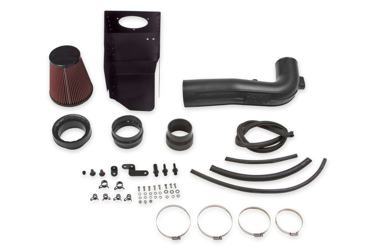 Delta Force Cold Air Intake Kit; Incl. Polyethylene Tubing/Air Dam/Red Cone Filter/Silicone Couplers/Stainless Steel Hardware; Black Powdercoat;