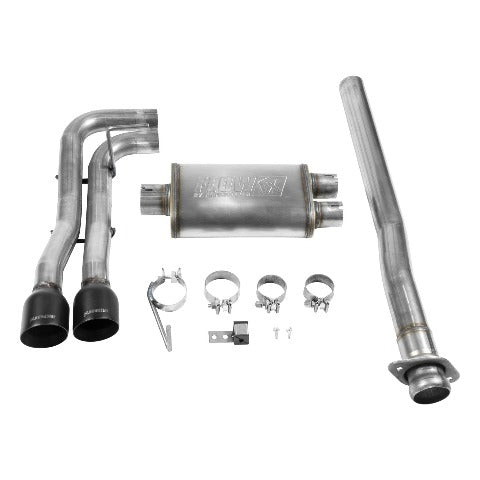 FlowFX Cat-Back Exhaust System; Dual; Dual Out Side; Incl. 2.5 in. Tubing/Muffler/Dual 4 in. Tips; 409 Stainless Steel;