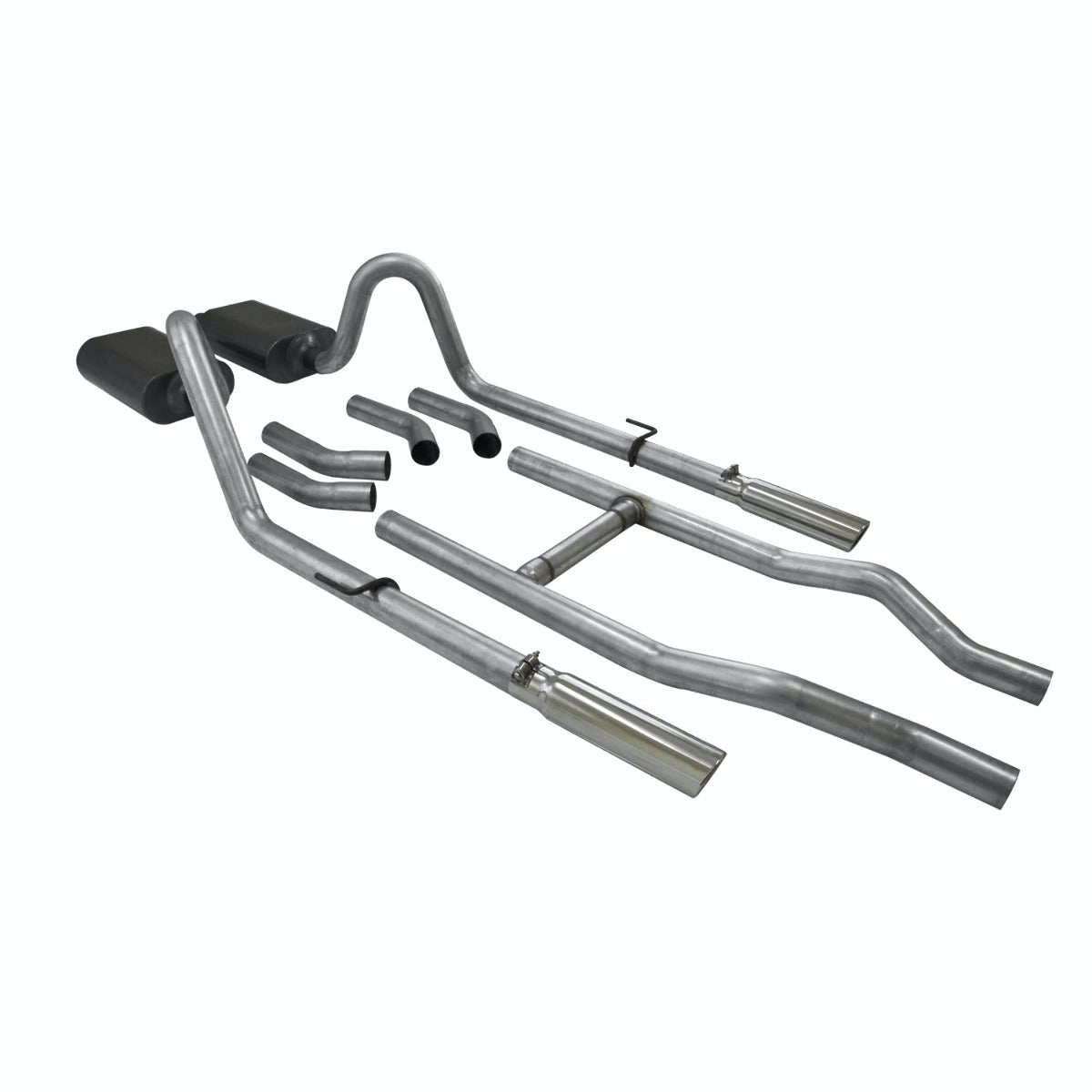 For the person who is looking for a complete Header-back dual exhaust system, these systems are mandrel bent for maximum performance and include specially selected mufflers. This American Thunder systems delivers a moderate to aggressive interior and exterior tone and is suited to the enthusiast who wants their performance to be heard. Like all Flowmaster systems, the benefits include improved throttle response, power and mileage. Designed for an easy fit, these systems include all necessary parts and hardware for easy installation. Constructed out of 409S stainless steel and carrying out limited life time warranty.