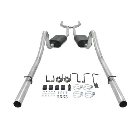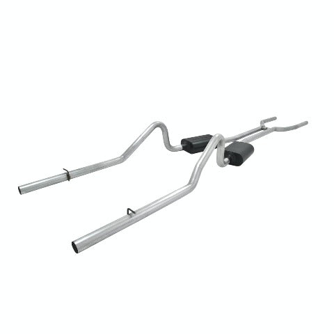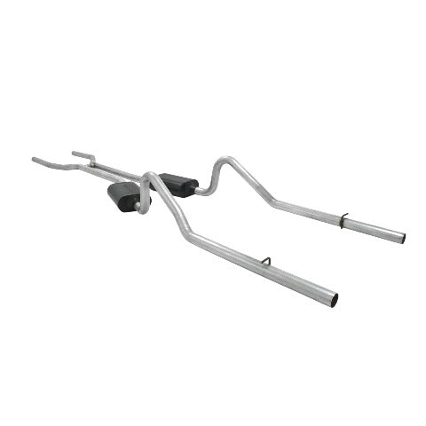 For the person who is looking for a complete Header-back dual exhaust system with a performance sound. This system is mandrel bent for maximum performance and includes specially selected mufflers. American Thunder 2.5 in. systems generally deliver a moderate to aggressive interior and exterior tone and are suited to the enthusiast who wants their performance to be heard. The sound level will depend greatly on the engine and level of modification. Like all Flowmaster systems, the benefits include improved throttle response, power and mileage. Designed for an easy fit, these systems include all necessary parts and hardware for easy installation.