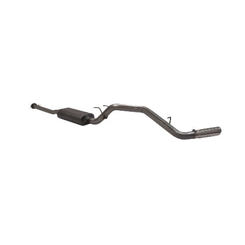 American Thunder Cat Back Exhaust System; Single; Single Side Exit; Incl. 2.5 in./3 in. Tubing/Super 50 Series™ Muffler/4 in. Logo Embossed Stainless Tip; 409 Stainless Steel;