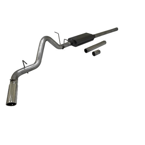 For the person who wants a subtle custom appearance with all the benefits that a Flowmaster Cat-back exhaust system provides. S.O.S. (Single out side) systems are the perfect choice. This Force II system delivers a mild exterior and interior tone, and is suited to customers looking for efficiency improvements without a lot of noise. Especially recommended for towing applications. Like all Flowmaster systems, the benefits include improved throttle response, power and mileage. Designed for an easy fit, these systems include all necessary parts and hardware for easy installation.