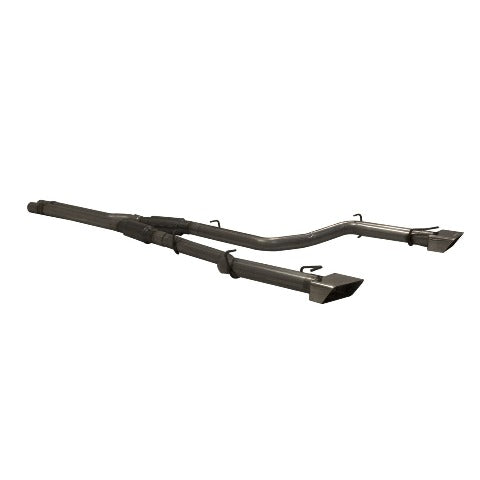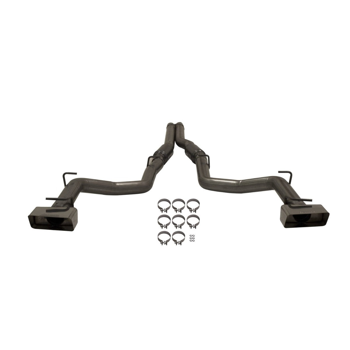 Outlaw Series™ Cat Back Exhaust System; Dual; Dual Rear Exit; Incl. 3.0 in. Tubing/Outlaw Series™ Mufflers/Scavenger X-Pipe/Rectangular Logo Embossed Stainless Tips;
