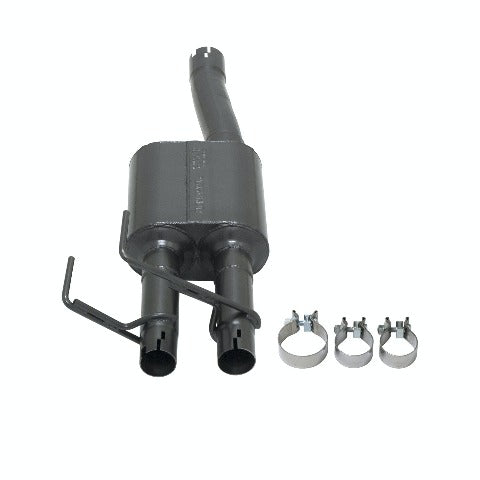 Outlaw® Series Direct Fit Muffler; Dual Rear Exit; 3.0 in. Inlet; 2.25 Outlet; Oval; 3 in. Tubing; Welded Baffle; Black; Stainless Steel;