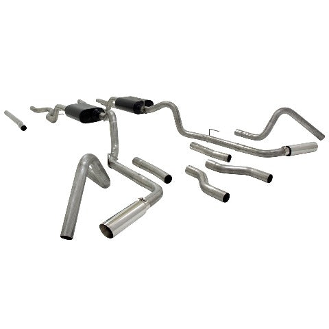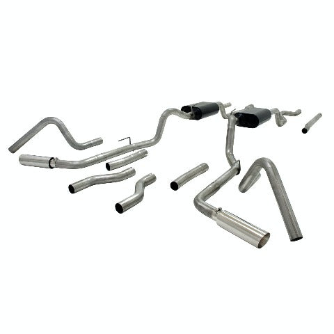 Flowmaster's American Thunder crossmember-back exhaust system for the 1967 - 1972 GM C10/C15 1/2 ton 2WD (Coil Spring) pickup truck is perfect for the person looking for moderate to aggressive sound levels with all of the performance benefits that you would expect from Flowmaster. This crossmember-back DOR/DOS (Dual Out Rear, Dual Out Side) system features dual Super 44 Series mufflers, 2.50 in. mandrel bent 409S stainless steel tubing and all the hardware necessary for a great fitting installation. (Stainless tips sold separately). This system is routed in a fashion that accommodates both long and short wheelbases with automatic or manual transmissions, and provides adequate clearance for substantially lowered vehicles. The exhaust system is covered by Flowmaster's Lifetime Limited Warranty.