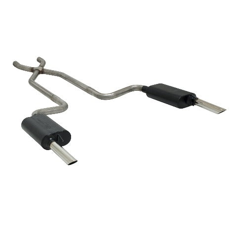 Force II Crossmember-Back Exhaust System; Dual; Dual Rear Exit; Incl. 2.25 in. Dia./50 Series™ Delta Flow Mufflers/2.25 in. Pol. 304 Stainless Tips; 409 Stainless Steel;