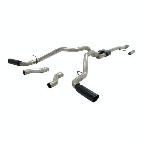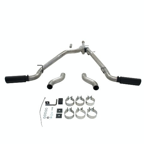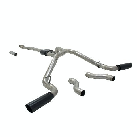 Flowmaster's Outlaw Cat-back exhaust system for the 2014-2018 GM Silverado and Sierra 1500 trucks (also fits 2019 classic models) is perfect for the person looking for maximum sound levels both inside and outside of the truck, with all of the performance benefits that you would expect from Flowmaster. This bolt-on DOR/DOS (Dual Out Rear or Dual Out Side) emissions-legal system for trucks with the 5.3L V8 engine features a stainless steel Super 10 Series muffler and dual mandrel bent 3.00 in. stainless steel tailpipes for maximum performance. The system also features Black Ceramic coated 4.00 in. double wall stainless steel tips. The exhaust system is covered by Flowmaster's Lifetime Limited Warranty. Designed for an easy fit, this system includes all necessary parts and hardware for installation. Note: Fits Crew Cab and Double Cab models only.