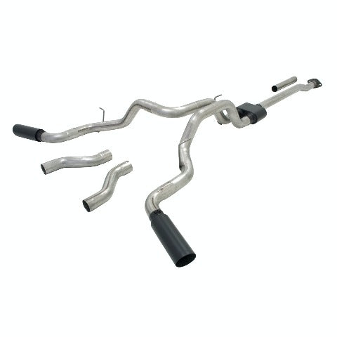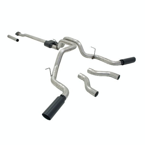 Flowmaster's Outlaw Series Cat-back exhaust system for the 2009-2014 Ford F-150 truck is perfect for the person looking for maximum sound levels both inside and outside of the truck, with all of the performance benefits that you would expect from Flowmaster. This bolt-on DOR/DOS (Dual Out Rear or Dual Out Side) emissions-legal system for trucks with the 4.6L, 5.0L and 5.4L V8 engines feature a stainless steel Super 10 Series muffler and dual mandrel bent 3.00 in. stainless steel tailpipes for maximum performance. The system also features Black Ceramic coated 4.00 in. double wall stainless steel tips. The exhaust system is covered by Flowmaster's Lifetime Limited Warranty. Designed for an easy fit, this system includes all necessary parts and hardware for installation. Note: Fits all wheelbases and both 2 and 4 wheel drive models.