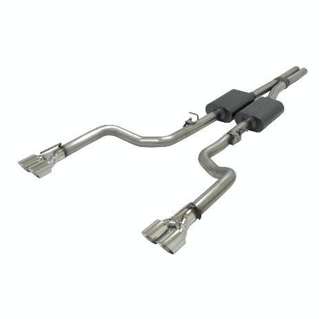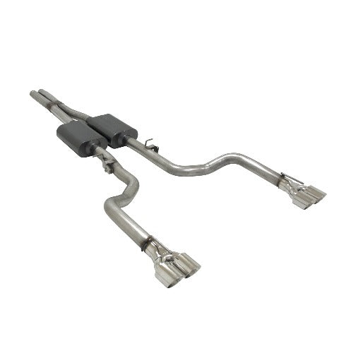Flowmaster's American Thunder Cat-back exhaust system for the 2015-2019 Dodge Challenger SRT 392 and R/T Scat Pack models with the 6.4L engine, as well as the SRT Hellcat with the 6.2L engine, is perfect for the person looking for an aggressive exterior sound level while maintaining a moderate interior sound with all of the performance benefits that you would expect from Flowmaster. This bolt on 409S stainless steel system features a 3.00 Scavenger X-pipe assembly that runs into a pair of specially built Super 40 Series mufflers. The systems uses 3.00 mandrel bent tubing for maximum performance and then is finished off with 3.50 Quad stainless steel tips that exit within the rear bumper valence. The exhaust system is covered by Flowmaster's Lifetime Limited Warranty. Designed for an easy fit, this system includes all necessary parts and hardware for installation.