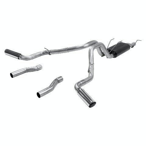 Force II Cat Back System; Dual; Dual Side Exit; Incl. 3 in. Tubing/50 Series™ HD Muffler/4 in. Polished Stainless Tip; 409 Stainless Steel;