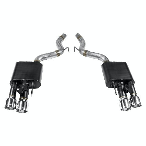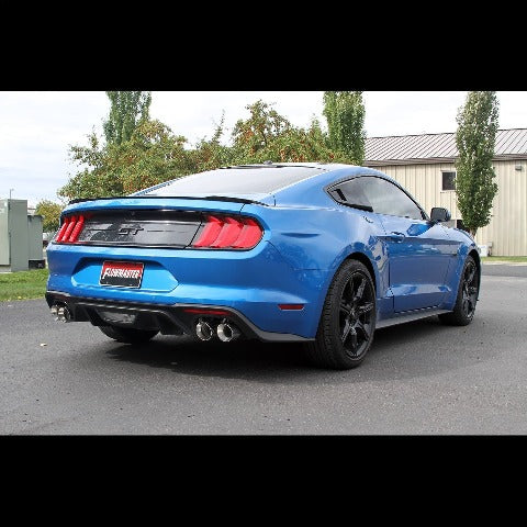 Flowmaster's American Thunder Axle-back exhaust system for the 2018 and 2019 Ford Mustang GT is perfect for the person looking for a moderate to aggressive sound level both inside and outside of the car, with all of the performance benefits that you would expect from Flowmaster. This bolt-on DOR (Dual Out Rear) emissions-legal system for cars with the 5.0L engine features a pair of Outlaw Series mufflers and dual mandrel bent 3.00 inch tailpipes for maximum performance. The mufflers include functional exhaust valves to work with the OE actuator motors to select between sound levels.The system is built out of 409S stainless steel and utilizes Quad 4.00 inch polished stainless steel tips with the Flowmaster logo embossed in them. This system fits vehicles equipped with Active Performance Exhaust Option. The exhaust system is covered by Flowmaster's Lifetime Limited Warranty. Designed for an easy fit, this system includes all necessary parts and hardware for installation. Note: This system fits hardtops and convertibles.