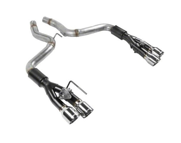 This Outlaw Axle-back exhaust system is specifically designed for the 2018-19 Ford Mustang GT coupe and convertibles with the 5.0L engine and Active Performance Exhaust Option. System features include a pair of race-proven Outlaw mufflers for a very aggressive exterior sound level with a noticeable interior tone and large 3.00-inch mandrel-bent 409S stainless steel tubing for high flow, durability, and longevity. Add to that, a pair of high-quality valves to accommodate the factory exhaust actuators for when you really want to open up the sound. The system is finished off with quad 4.00-inch polished stainless steel tips for an aggressive look that demands attention, the same as the sound coming from the Outlaw mufflers. Includes all necessary parts, hardware and detailed instructions for an easy installation you can do at home.