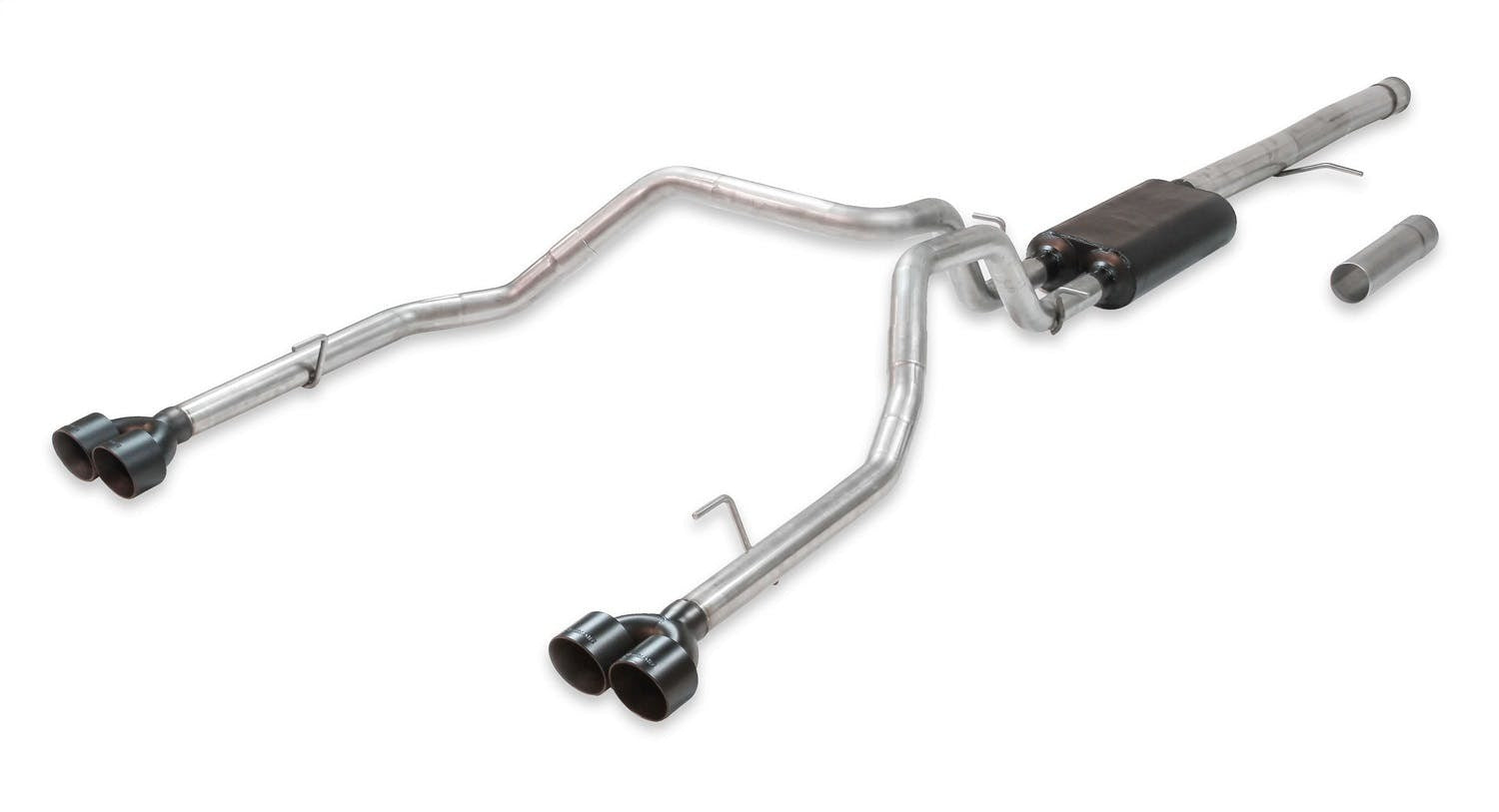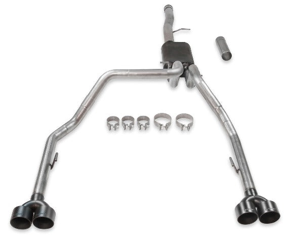 Flowmaster's American Thunder cat-back dual exhaust system for the 2019 GM Silverado/Sierra 1500 (new body style) trucks with the 6.2L engine is perfect for the person looking for an aggressive sound level outside the truck, with a moderate interior tone and all the performance benefits you would expect from Flowmaster. This emissions-legal bolt-on system fits all 6.2L Crew Cab with 5.5-ft and 6.5-ft beds, and all Double Cab with a 6.5-ft bed with factory dual exhaust. Features include a mandrel-bent 3.50-inch stainless steel inlet tube flowing into a single 50 Series HD muffler, dual 2.50-inch mandrel-bent stainless tailpipes replacing the factory resonators and giving your truck some growl. The tailpipes are finished off with quad 4.00-inch black ceramic coated stainless steel tips that exit in place of the factory bolt-on trim bezels giving your truck an aggressive performance style and setting your truck apart from others, sending the message that you would rather lead than follow. Designed for an easy fit, this system includes all necessary parts, detailed instructions and hardware for an easy at home installation. Notes: Fits 147 and 157 wheelbases with 6.2L and Factory Dual Exhaust.