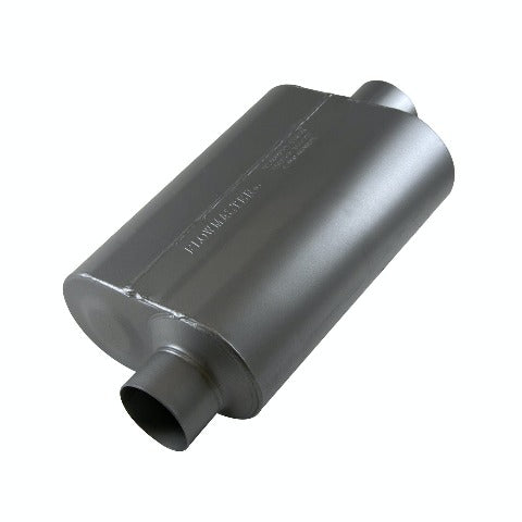 The Super 40 features Flowmaster's Delta Flow technology. It's larger case profile provides the best of both worlds of performance and sound. The Super 40 has that deep powerful sound of the Original 40 series but with all the benefits of performance and low interior resonance from the Delta Flow technology. Constructed of 16 gauge 409S stainless steel and fully MIG welded for maximum durability.