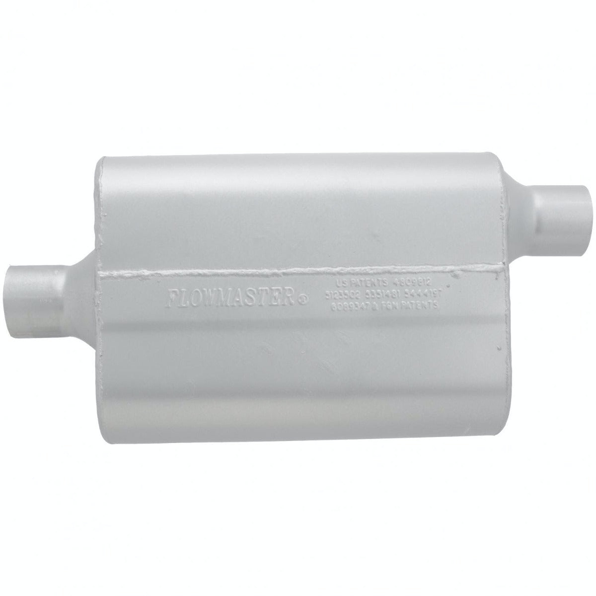 This two chamber design incorporates Flowmaster's patented Delta Flow technology. The Delta deflectors generate increased scavenging for better performance and reduced interior sound. Milder exterior tone and reduced interior resonance over Original 40 series. Constructed of 16 gauge aluminized steel and fully MIG welded for maximum durability.