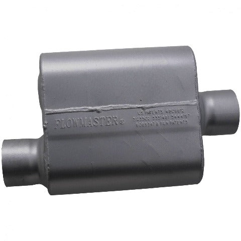 10 Series™ Delta Force Race Muffler; 3.0 in. Offset Inlet/Center Outlet; Case Dimensions 4 in. x 9.75 in. x 10 in.; 16 in. Overall Length; Aluminized Steel;