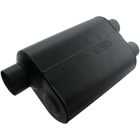 The Super 40 features Flowmaster's Delta Flow technology. It's larger case profile provides the best of both worlds of performance and sound. The Super 40 has that deep powerful sound of the Original 40 series but with all the benefits of performance and low interior resonance from the Delta Flow technology. Constructed of 16 gauge aluminized steel and fully MIG welded for maximum durability.
