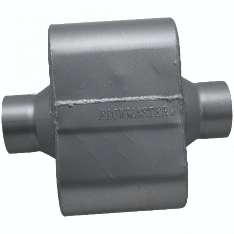 Single chamber. The 10 Series race mufflers are intended for racing applications and utilize Flowmaster's patented Delta Flow technology for maximum performance. Recommended for racing applications where a muffler is required without a set decibel limit to be met. Will provide a noticeable dB reduction over open headers. Please call the Flowmaster tech-line for assistance with specific dB requirements and applications.
